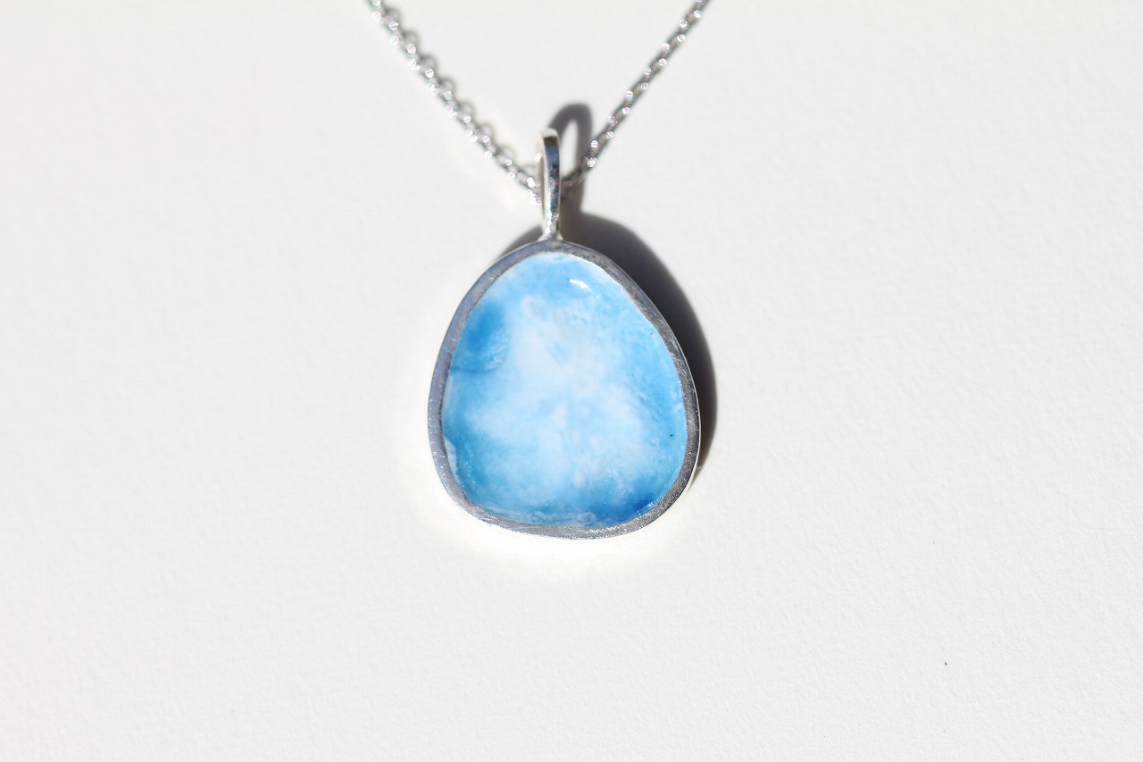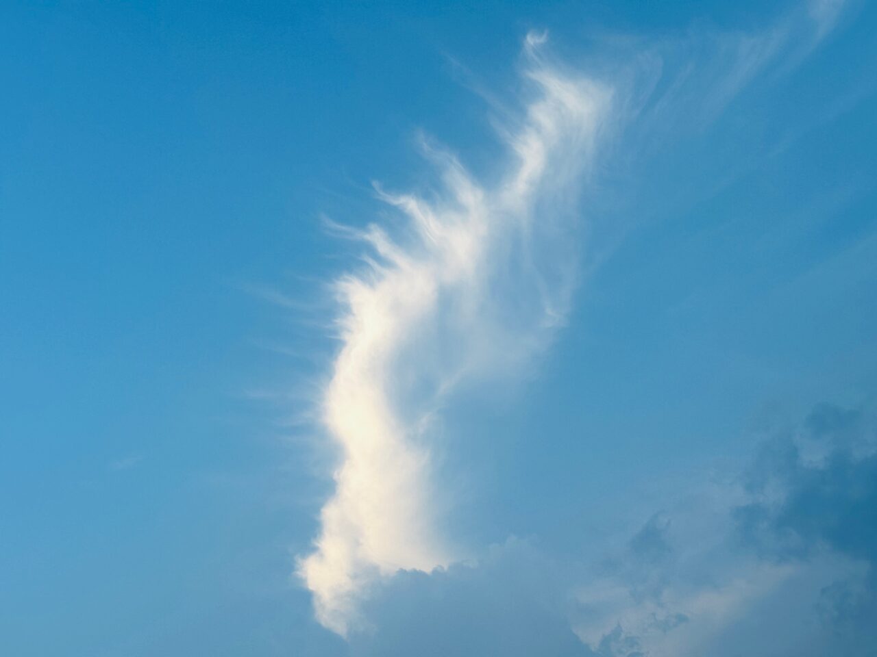 その色彩は、まるで青空に浮かぶ雲のよう。柔らかな青と光沢のある白が、空の奥行きを感じさせます。日常の中で、ふと見上げる空を思い出させます。